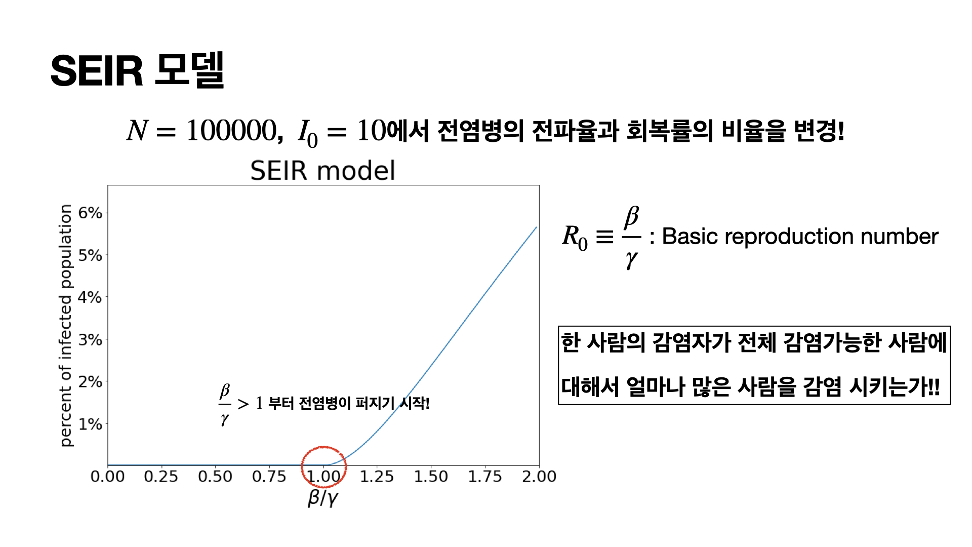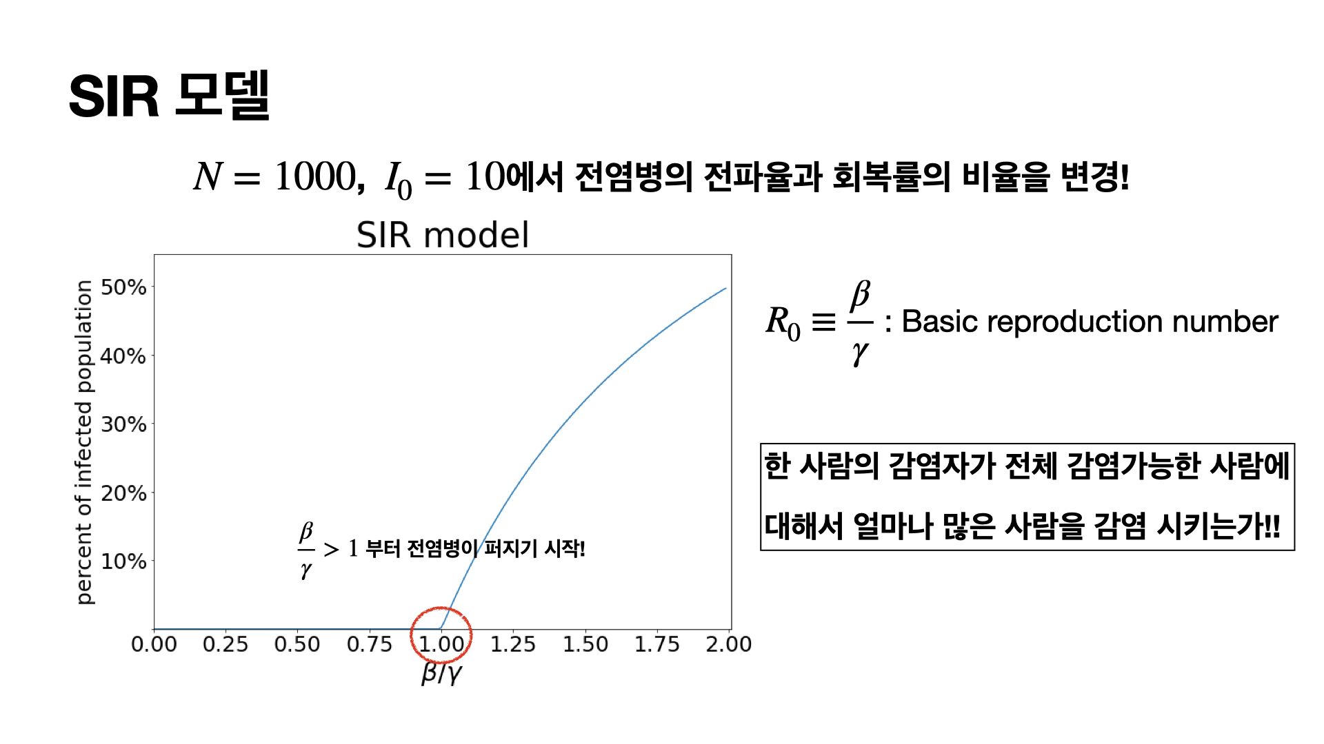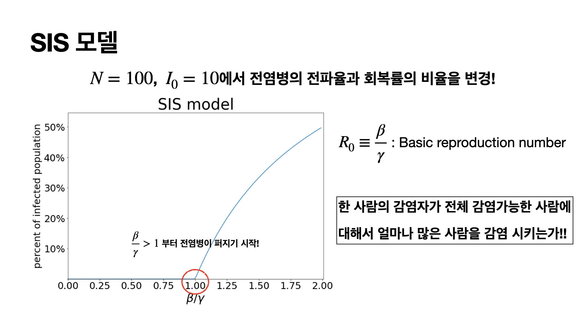 위의 SIS모델에서와 같이 기초 재생산 지수가 나오고 중요한 지표입니다.